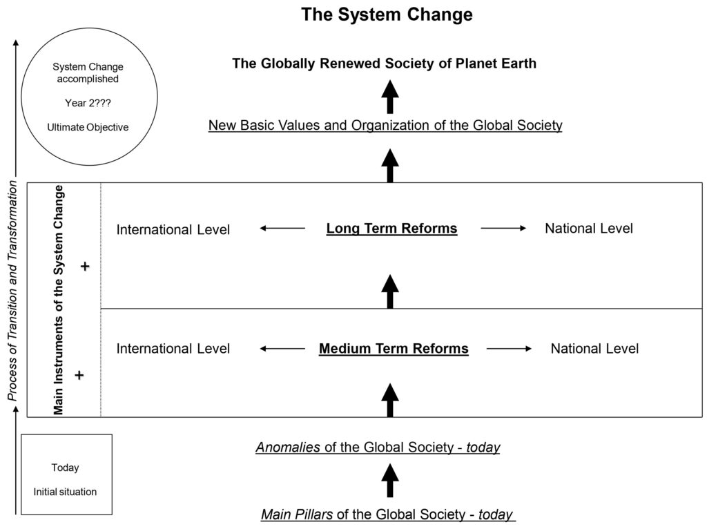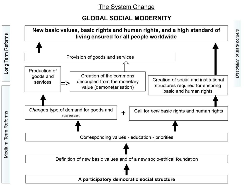 A programmatic social and political blueprint for a necessary, epoch-making Reorientation of human civilisation with the goal of achieving sustainable development at all levels of global society, a high universal standard of living and finally overcoming poverty, war and the self-destruction of the planet.